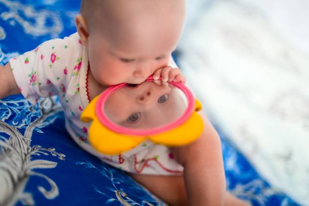 La vue d’un nourrisson évolue rapidement durant les premiers mois. Suspendez des mobiles aux couleurs contrastées au-dessus de son lit et placez des miroirs incassables à sa portée. Les jeux de lumière douce et les ombres qui dansent sur les murs captiveront son attention et développeront sa capacité de concentration.